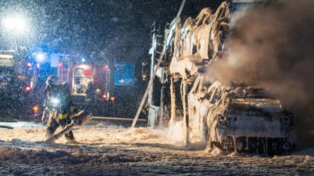 Schnee und Eisregen lösen Chaos auf vielen Autobahnen aus. Jetzt kommt auch noch ein brennender E-Auto-Transporter auf der A6 dazu. Ein brennender Sattelzug mit geladenen E-Autos hat die Autobahn 6 bei Kaiserslautern in Richtung Saarbrücken lahmgelegt. „Er steht im Vollbrand. Sechs von acht E-Autos brennen“, teilte ein Polizeisprecher mit. Die Brandursache war zunächst unbekannt. Verletzte weiter>