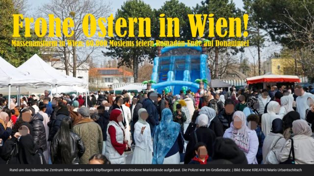 Massenansturm in Wien: 60.000 Moslems feiern Ramadan-Ende auf Donauinsel Wien. In Wien haben sich am frühen Morgen 60.000 Muslime auf der Donauinsel zum Eid-Fest versammelt, um das Ramadan-Ende zu feiern – die Menschenmassen sorgen für Verkehrsprobleme und einen Großeinsatz der Polizei. Weiterlesen auf krone.at Schon zweimal haben die Türken versucht, Wien zu erobern (1529 und weiter>